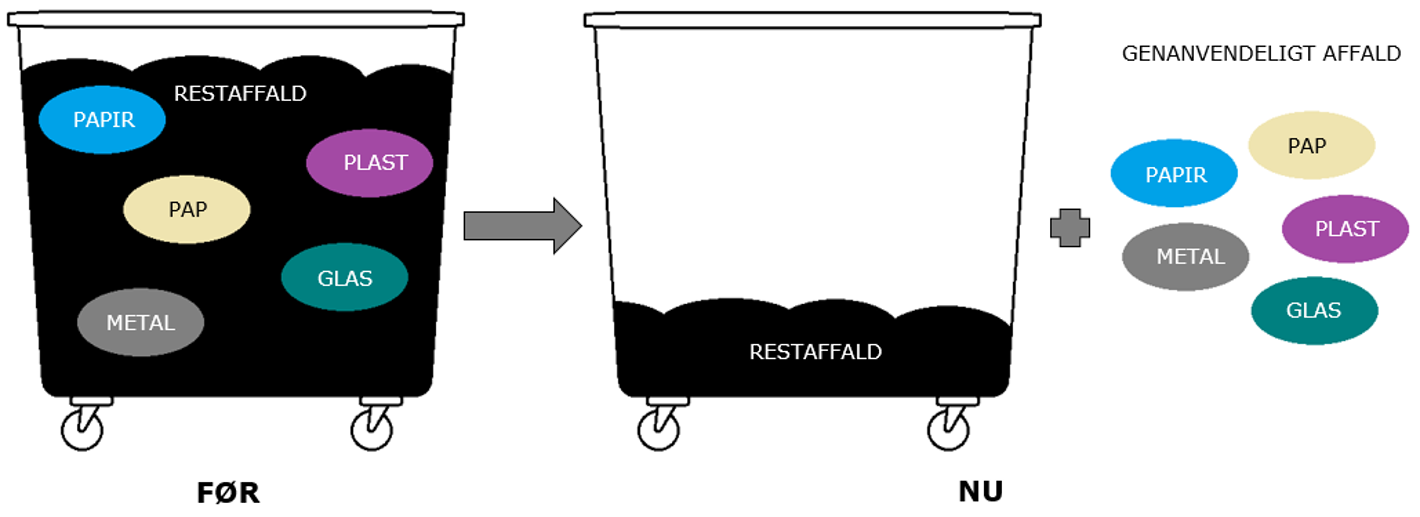 Affaldsproducerende virksomheder har pligt til at kildesortere det genanvendelige erhvervsaffald til materialenyttiggørelse. Udover det genanvendelige erhvervsaffald, skal det husholdningslignende affald fra virksomheder også sorteres.