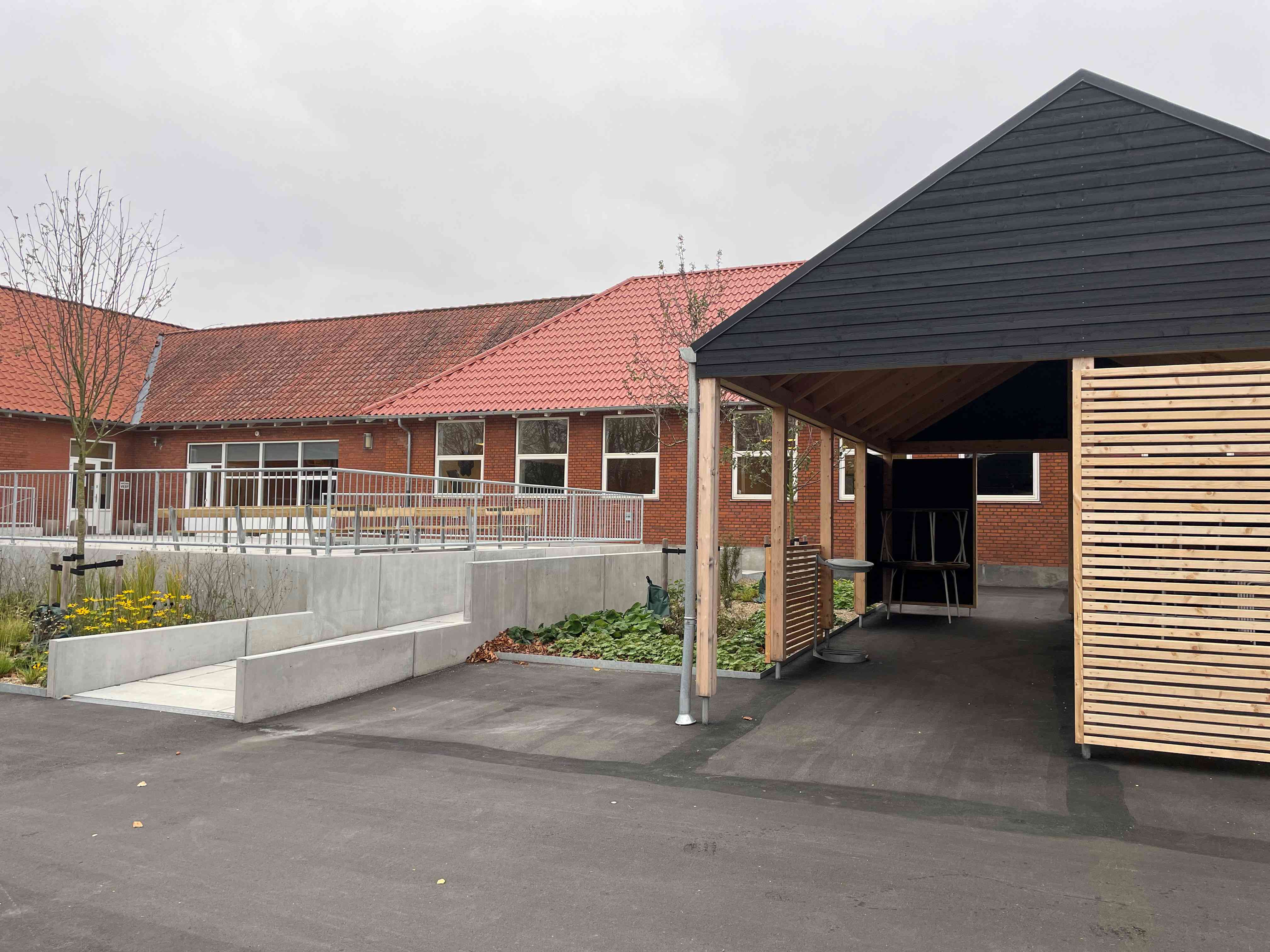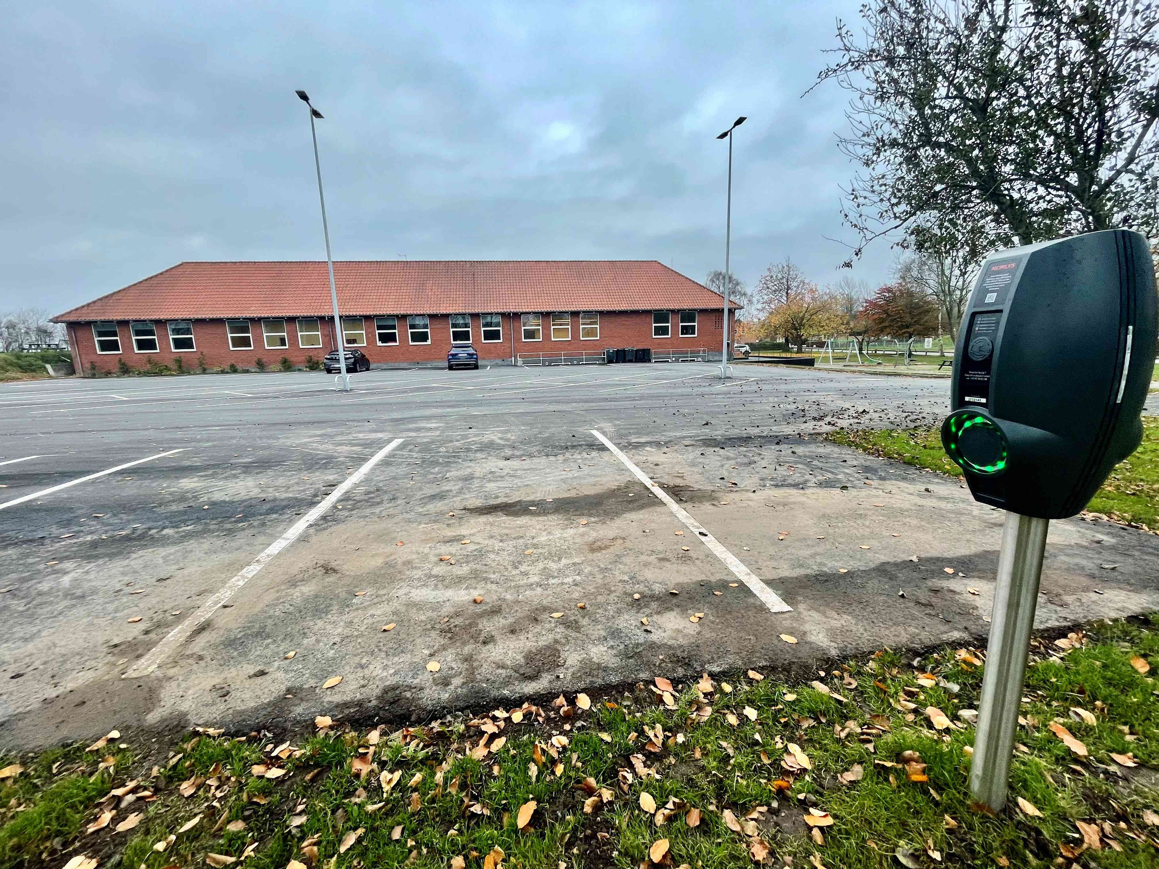 Der er gode parkeringsforhold med ladestander og tilgængelighed for handicappede.
