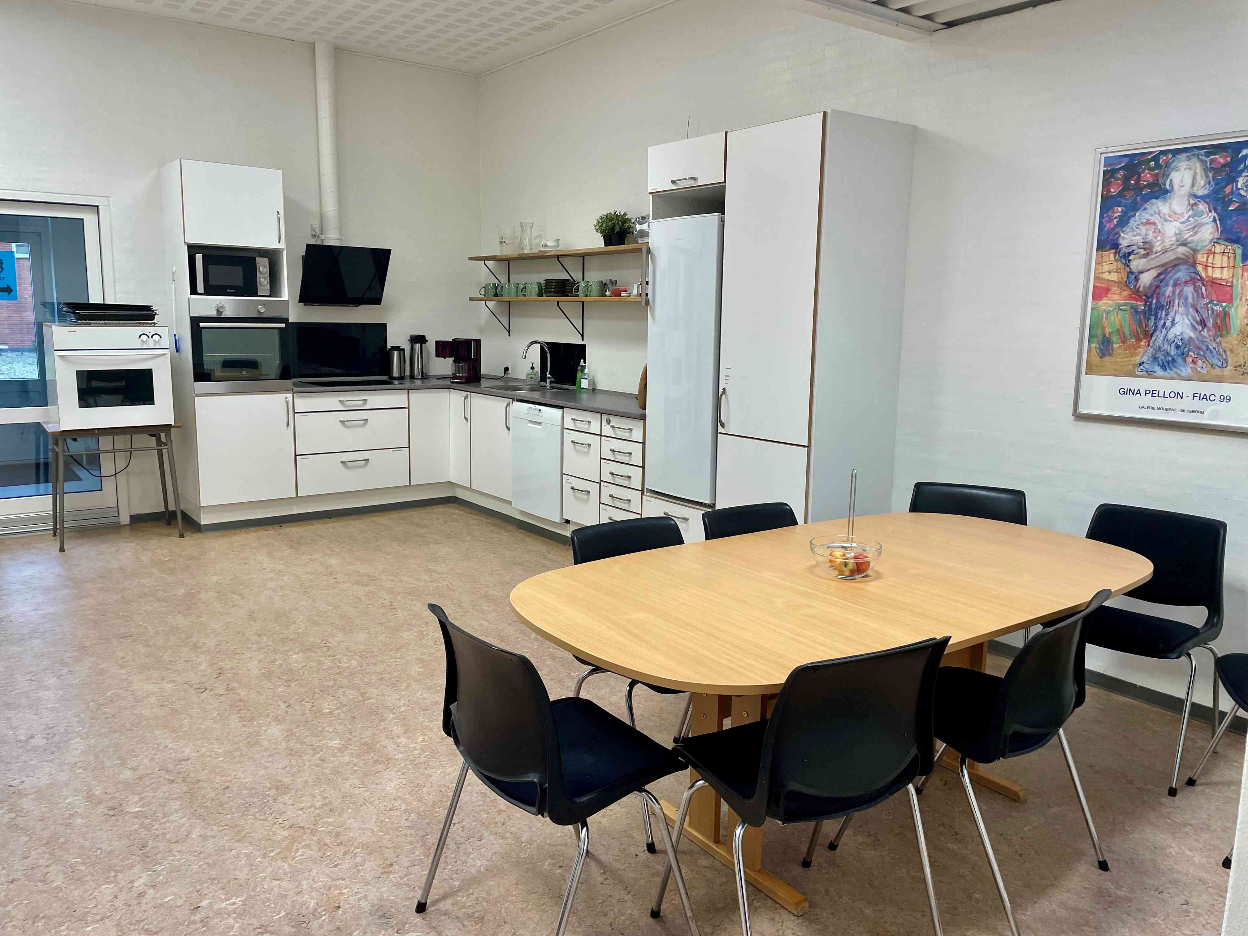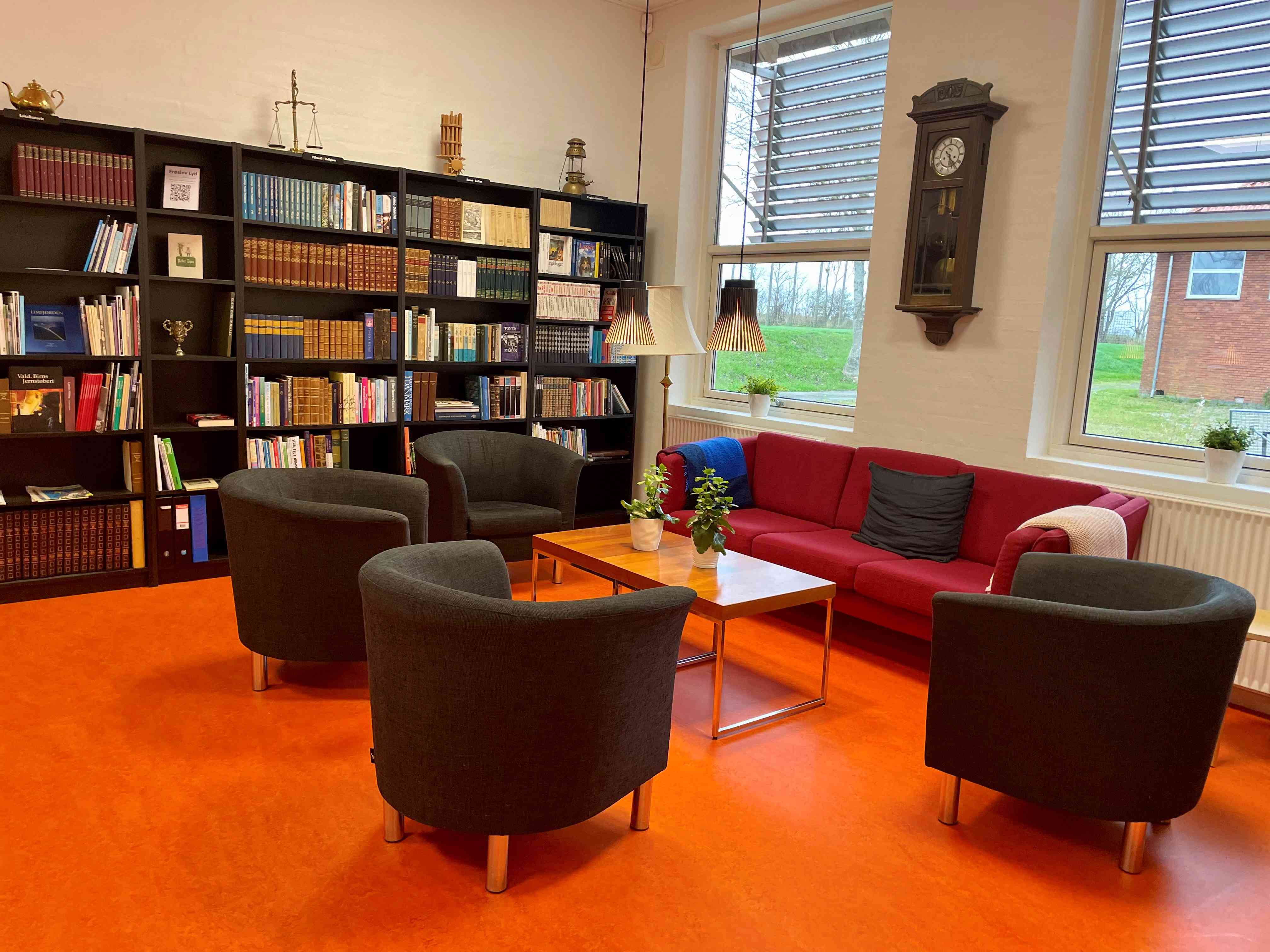 Fællesfaciliteterne omfatter mødelokale (bibliotek), hyggeligt fællesrum med runde borde, bar og projektor, moderne multimedierum og endelig et podcastrum. Derudover kan nævnes en dejlig udendørs terrasse, tekøkken, toiletfaciliteter og adgang til rengøringsudstyr. Der er gode parkeringsforhold og let adgang for handicappede.