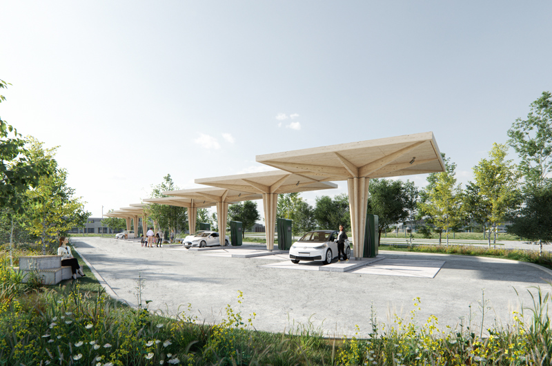 Udover at forsyne elbiler med lynhurtig strøm, vil stationen med sit grønne hjerte også indbyde til en meningsfuld pause for elbilisterne, hvor sanserne vækkes: