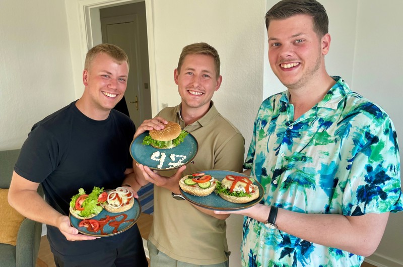 Burgerbøffer steger på panden. Lyden blandes med latter og hvidvin, der plasker fra flasken og ned i de tre glas. Det er ikke weekend, men mændene i de lille køkken i Nykøbing har alligevel lidt af en fest, mens de frosne fritter hældes ud på bagepladen og kommer i ovnen.